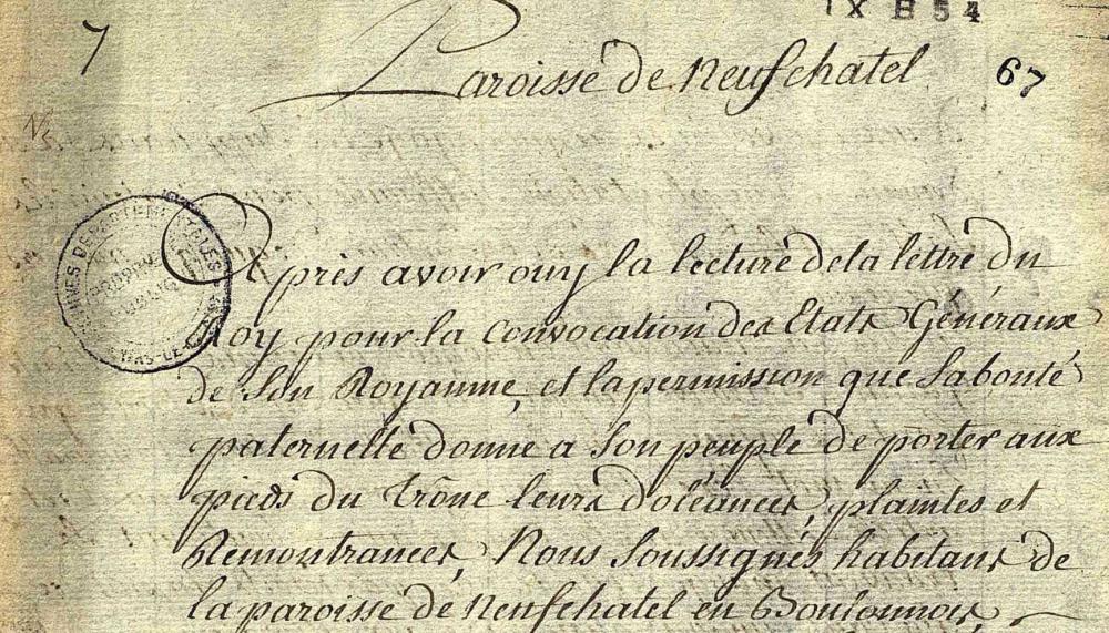 3- Cahier des Doléances de Neufchâtel Arch.dép. du Pas-de-Calais-9B54/67