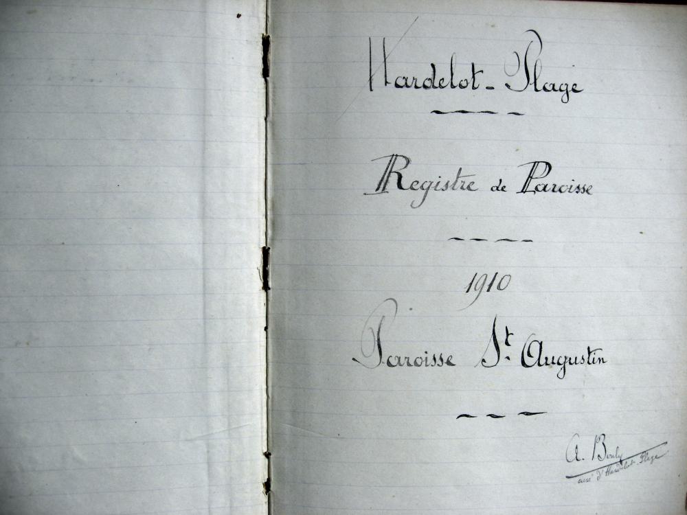 Registre paroissial 1910 avec la signature de l'abbé Bouly