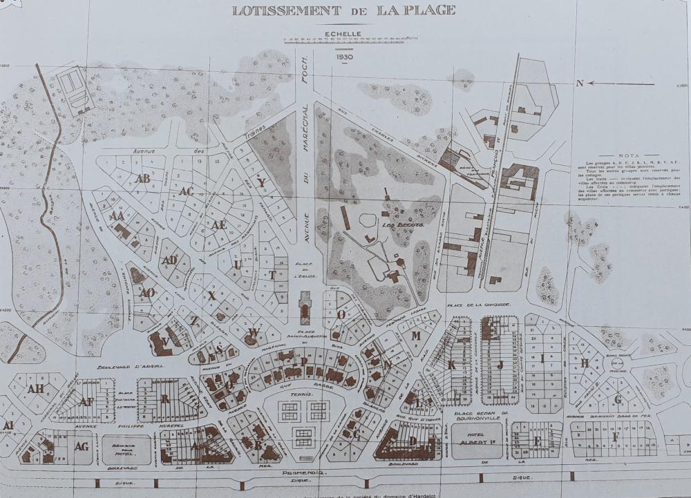 En 1930, le projet de Whitley et Cordonnier a pris corps, le plan de la station -Lotissement de la Plage- a légèrement évolué. Hardelot a pris son essor comme le montre la revue « Hardelot 1931 », éditée par la société du Domaine d’Hardelot.