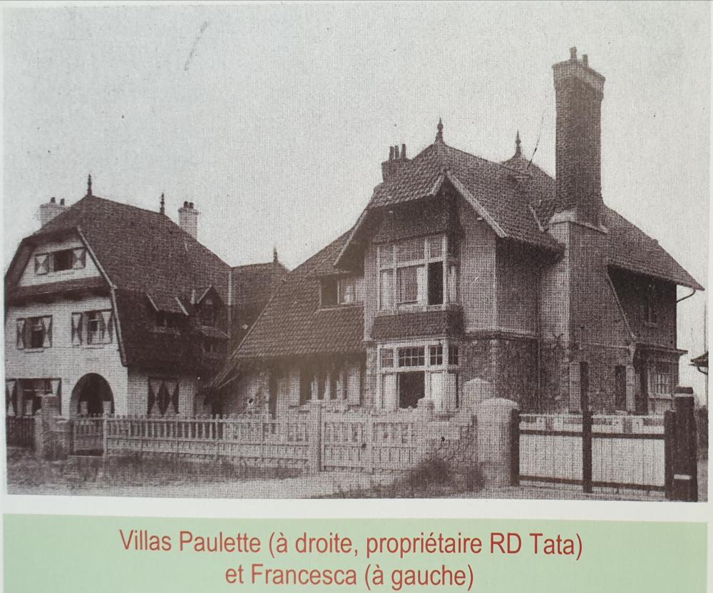 En 1907, RD TATA et son épouse française Suzanne Brière, « Sooni », font construire par Louis-Marie Cordonnier une villa face aux tennis et à la plage d’Hardelot, la Villa Paulette. Par la suite, trois autres maisons et trois commerces* seront construits par la famille qui fait d’Hardelot son lieu de vacances d’été et participe à la vie mondaine de la toute jeune station.
