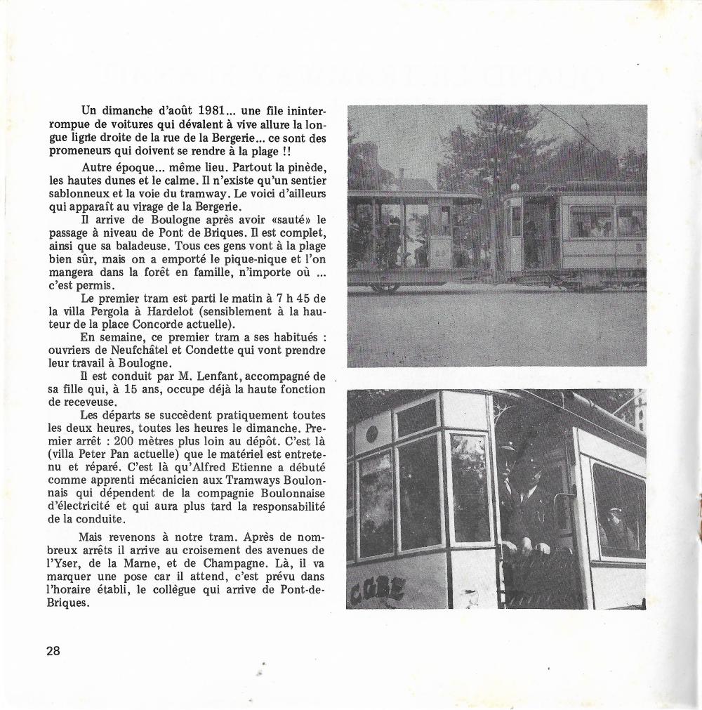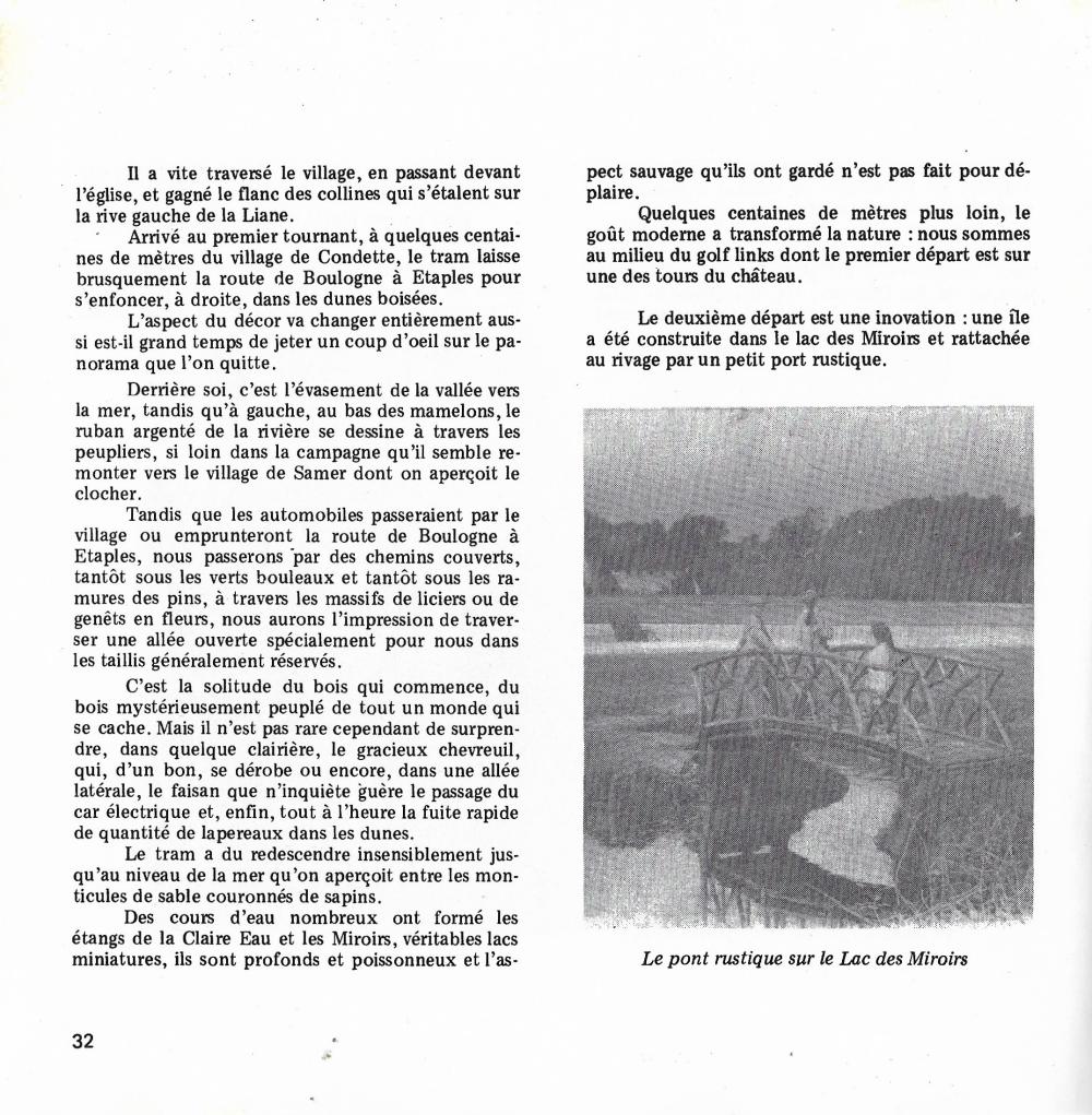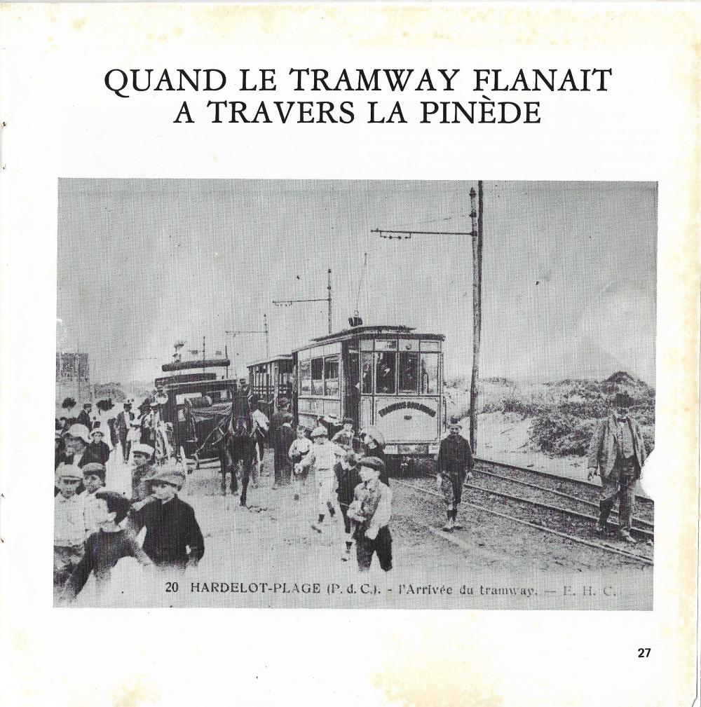 Un opuscule non daté paru dans la commune de Condette  intitulé « Pour la petite histoire »*, dont nous reproduisons ci-dessous le texte et les photos de quelques pages, relate le voyage d’un passager du tramway embarqué à Boulogne pour un jusqu’au terminus d’Hardelot plage. Découvrons ses impressions reproduites  dans le petit ouvrage sous le titre : « Quand le tramway flânait dans la pinède » :
