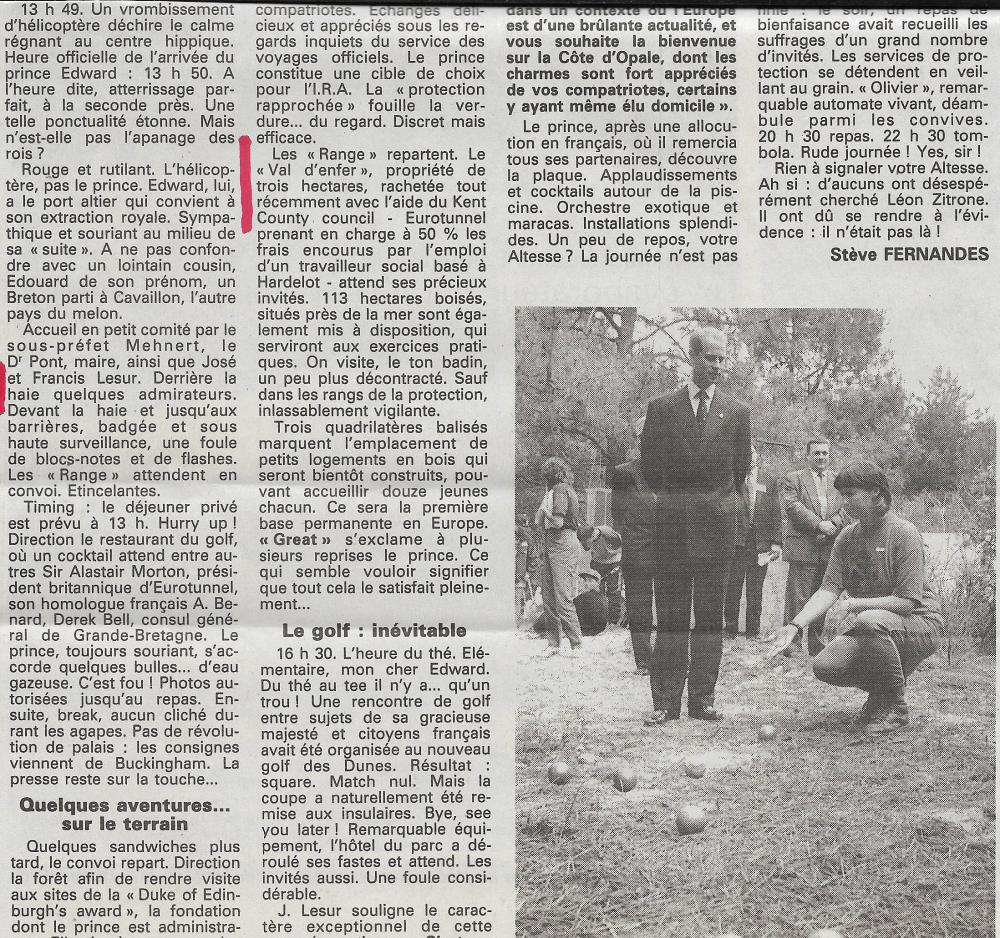 Le PRINCE EDWARD, futur DUC D’EDIMBOURG, à Hardelot en 1992