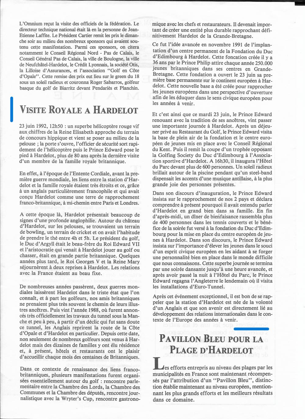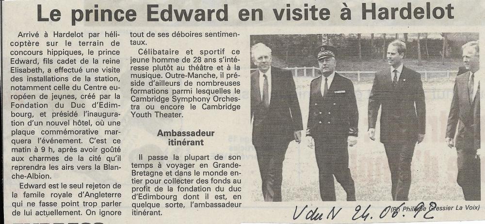 Extrait de la Lettre du Domaine juillet 1992 Prince Edward - verso 2