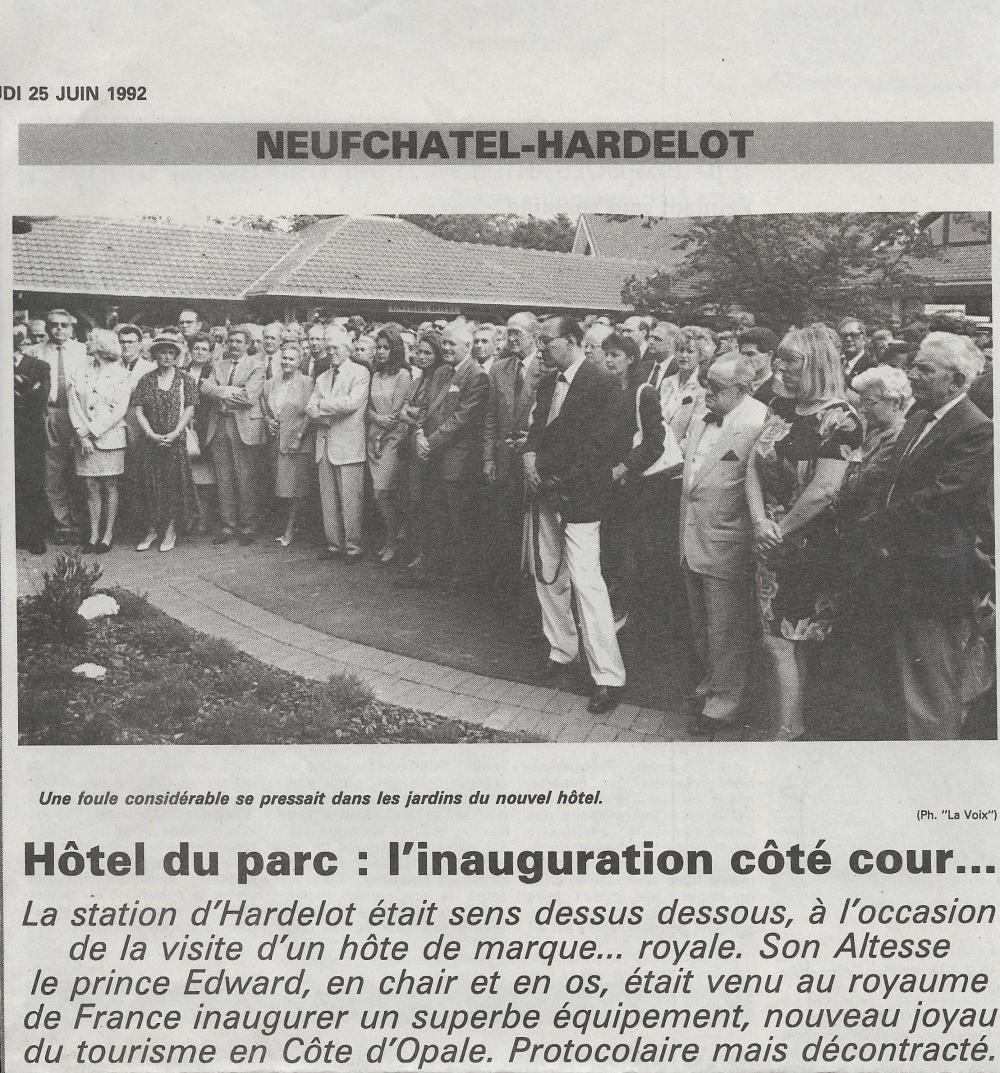 Le 23 juin 1992, à l’invitation de José et Francis Lesur, plus de 80 ans après la dernière visite d’un membre de la famille royale britannique, le prince Edward s’est rendu à Hardelot pour l’inauguration de l’Hôtel du Parc. Le prince Edward est duc d’Edimbourg depuis 2023.